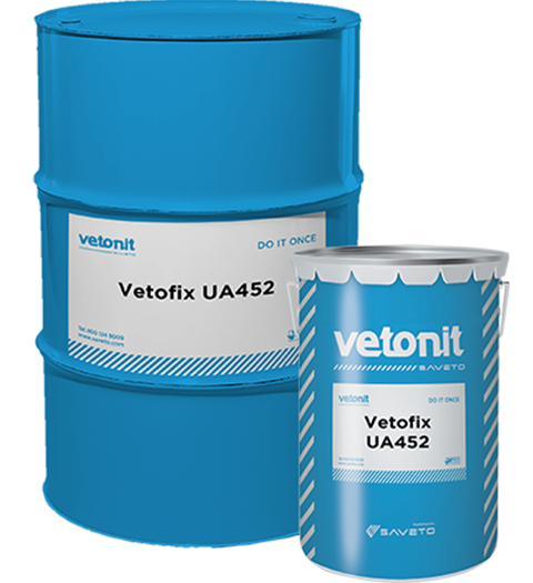 Vetofix UA452 is a two-component, high viscous, polyurethane-based binder system designed for vertical and horizontal applications. It is utilized to join sandwich panel elements and similar constructions made from various materials. This product is a blend of premium-quality, pure hydrophobic polyurethane resin, cured with a special grade of hardener, and reinforced with fine fillers.