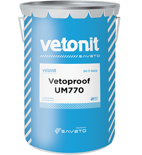 Vetoproof UM770 is a premium quality single-component polyurethane waterproofing membrane; the product is a cold liquid applied that cures by reaction with atmospheric moisture to form a highly elastic rubbery jointless waterproofing membrane.
