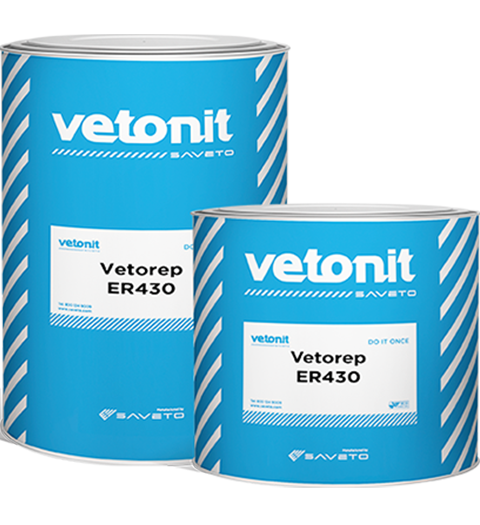 Vetorep ER430 must be mixed mechanically. Stir the hardener and base components separately to disperse any settled material before mixing them together.
