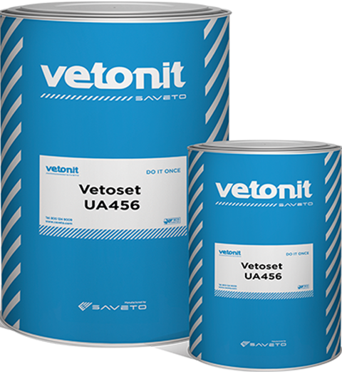 Vetoset UA456 is a two-component, polyurethane-based binder system for horizontal applications, used to join sandwich panel elements and other similar constructions made of different materials. It is a blend of premium quality pure hydrophobic polyurethane resin, cured with a special grade of hardener, and reinforced with fine fillers