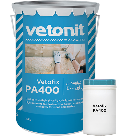 High-performance, fast-setting polyester adhesive and putty for stone and marble.