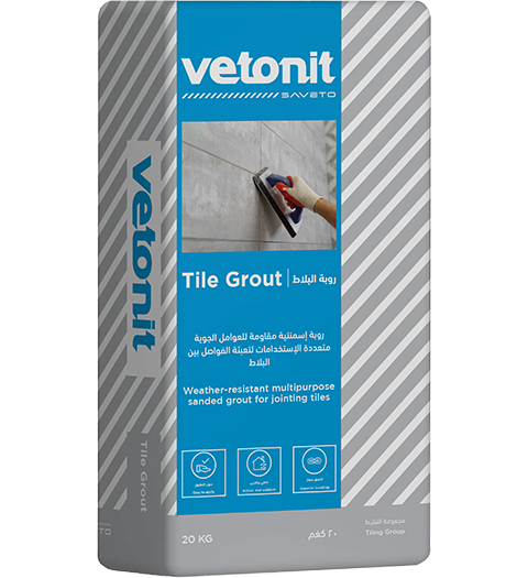 Weather-resistant multipurpose sanded grout for jointing tiles.