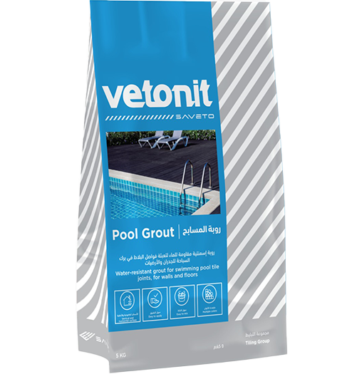 Vetonit Pool Grout is an improved cementitious grout with the additional characteristics of reduced water adsorption and high abrasion resistance (as per ISO-13007-3 class CG2 WA). It is composed of hydraulic binders, selected aggregates, special additives, and polymers. And is supplied as a dry powder in pre-weighed bags ready to use on-site, requiring only the addition of clean water to produce easily workable mortar. Vetonit Pool Grout is ideal for joining ceramic tiles and marble. Vetonit Pool Grout should be applied at a thickness of 2 - 4 mm for wall tiles and 3 - 8 mm for floor tiles.